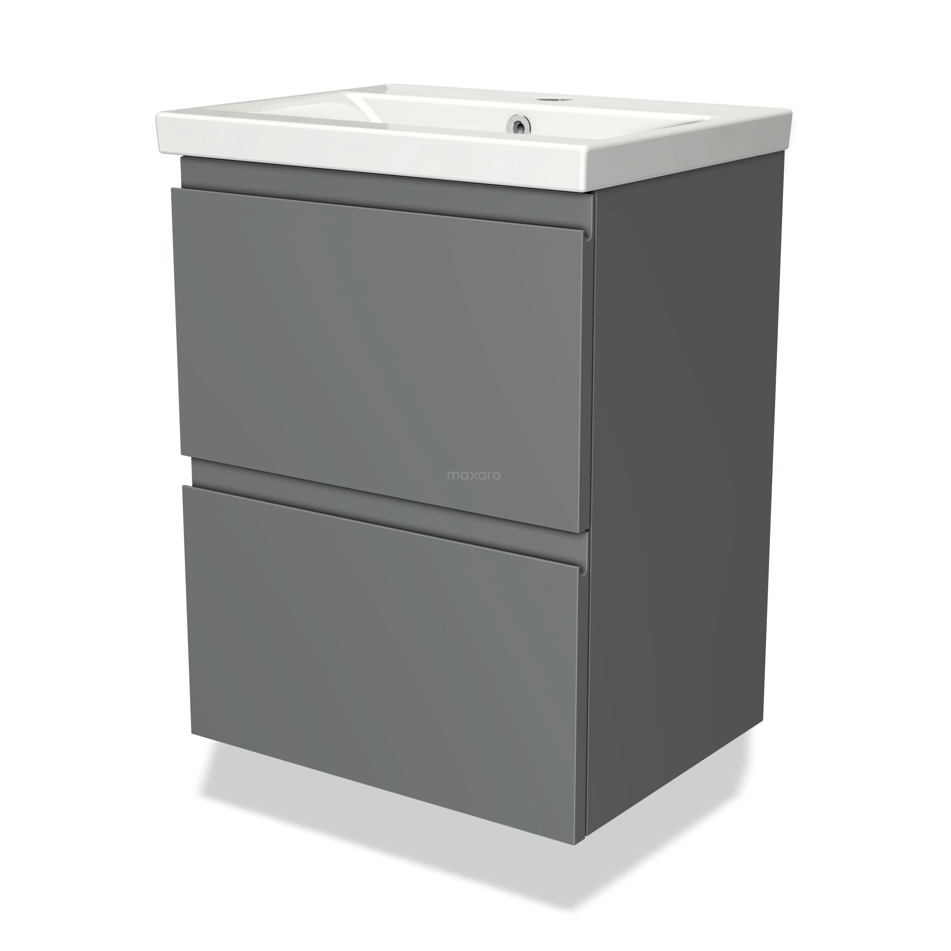 Modulo Slim Bathroom furniture with sink | 50 cm Mid grey Handle-less front Ceramic 2 Stacked drawers