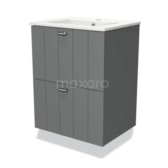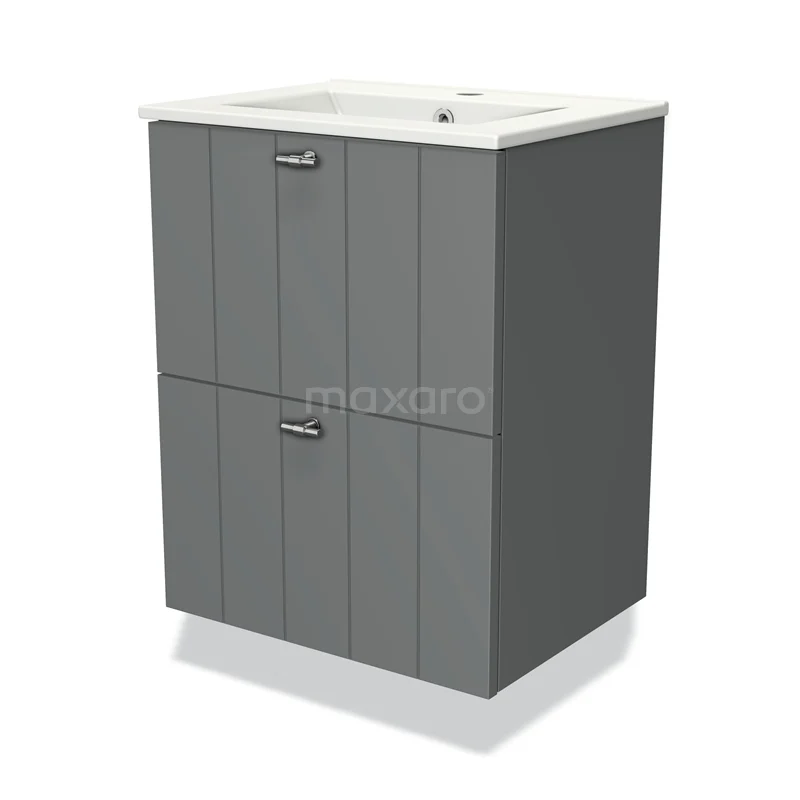 Modulo Slim Bathroom furniture with sink | 50 cm Mid grey Slat front Ceramic 2 Stacked drawers