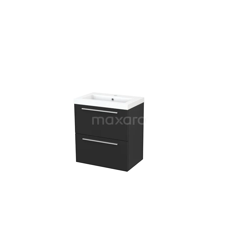 Modulo+ Slim Bathroom furniture with sink | 60 cm Carbon Flat front Mineral marble 2 Stacked drawers