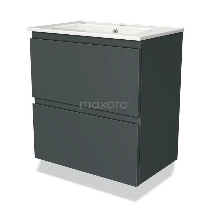 Modulo Slim Bathroom furniture with sink | 60 cm Dark grey Handle-less front Ceramic 2 Stacked drawers