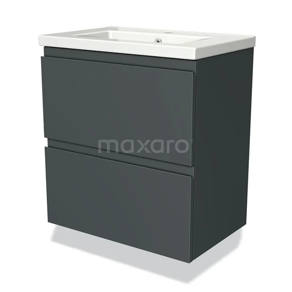 Modulo Slim Bathroom furniture with sink | 60 cm Dark grey Handle-less front Ceramic 2 Stacked drawers