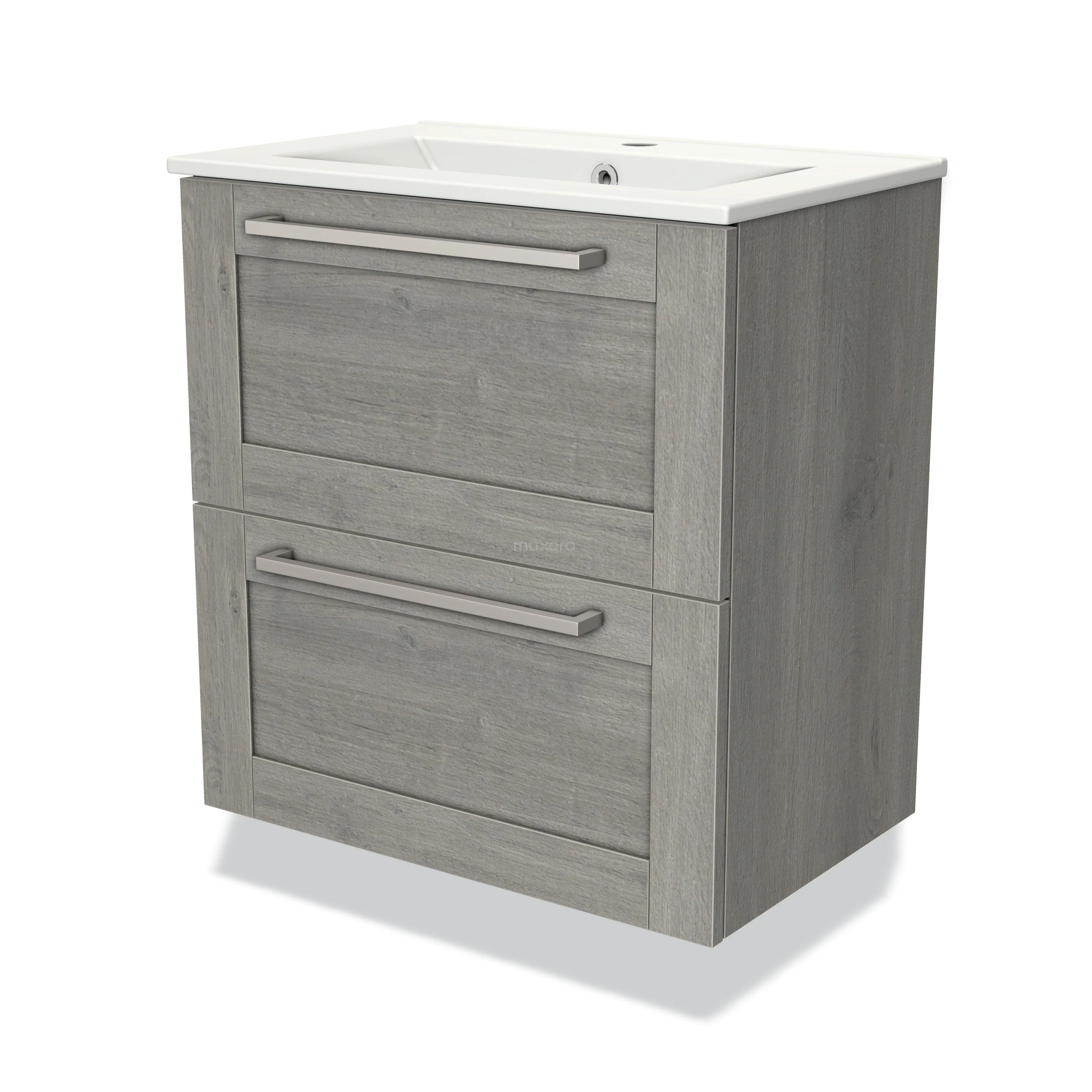 Modulo Slim Bathroom furniture with sink | 60 cm Grey oak Frame front Ceramic 2 Stacked drawers