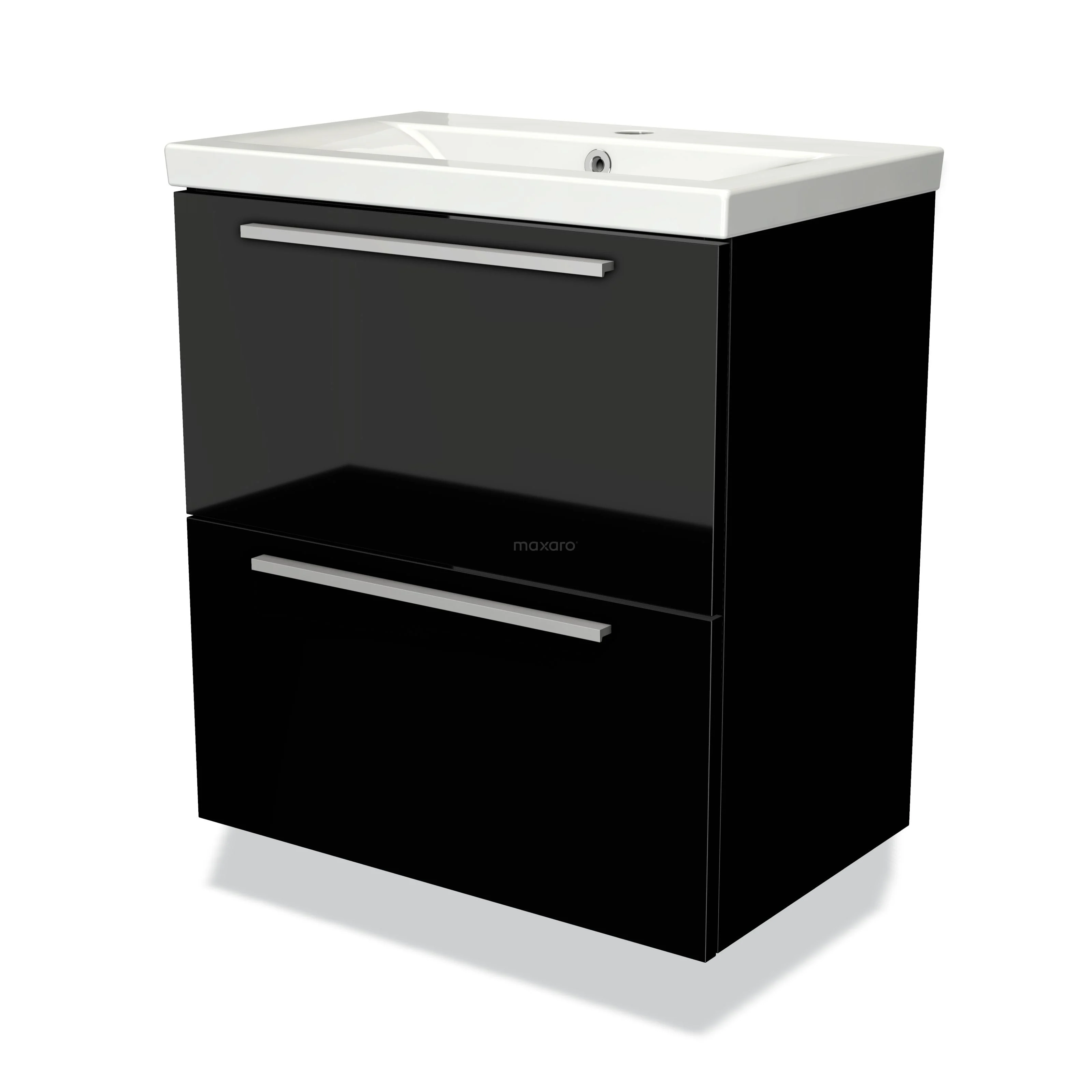 Modulo Slim Bathroom furniture with sink | 60 cm High-gloss black Flat front Ceramic 2 Stacked drawers