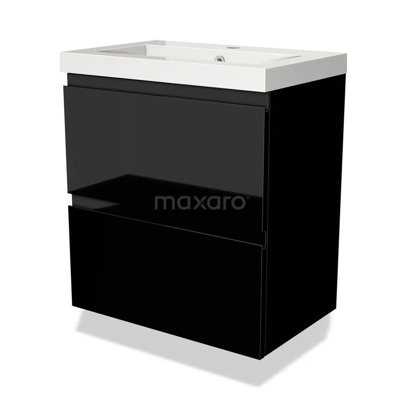 Modulo Slim Bathroom furniture with sink | 60 cm High-gloss black Handle-less front Mineral marble 2 Stacked drawers