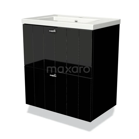 Modulo Slim Bathroom furniture with sink | 60 cm High-gloss black Slat front Ceramic 2 Stacked drawers