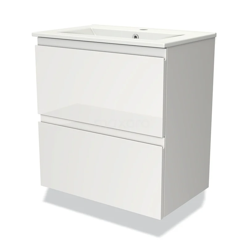 Modulo Slim Bathroom furniture with sink | 60 cm High-gloss white Handle-less front Ceramic 2 Stacked drawers
