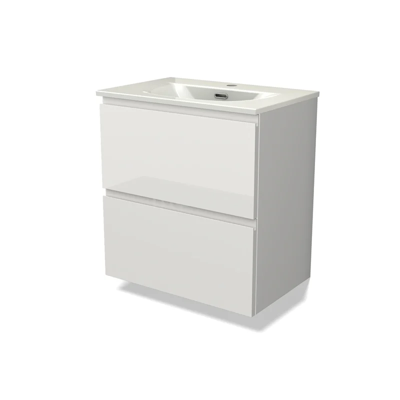 Modulo Slim Bathroom furniture with sink | 60 cm High-gloss white Handle-less front Ceramic 2 Stacked drawers