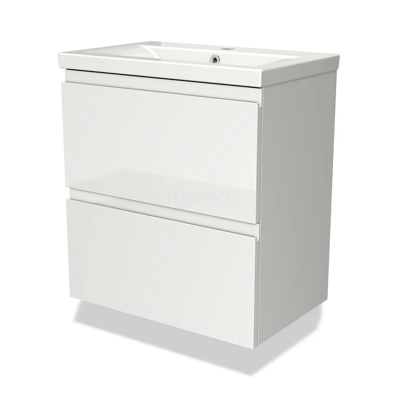 Modulo Slim Bathroom furniture with sink | 60 cm High-gloss white Handle-less front Ceramic 2 Stacked drawers