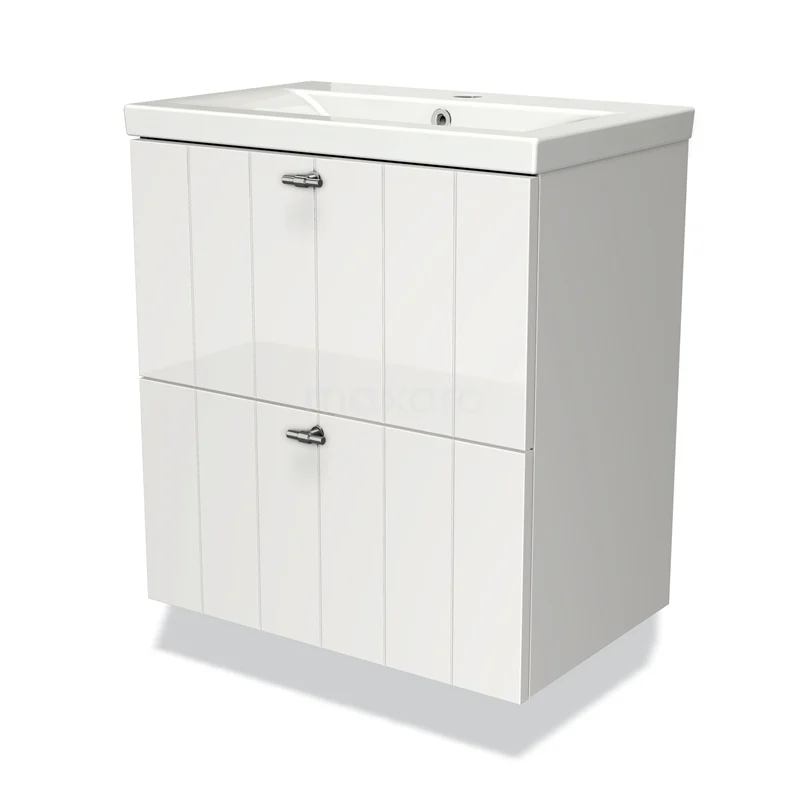 Stylish design Thanks to its stylish design, this vanity unit will be the eye-catcher of your bathroom. The base cabinet features a slatted front and has a high-gloss white finish. This colour has a modern appeal and gives the interior a fresh look-and-feel. In addition, the slatted front adds a rural touch. You need to add the handles yourself. These are available in different colours and shapes.