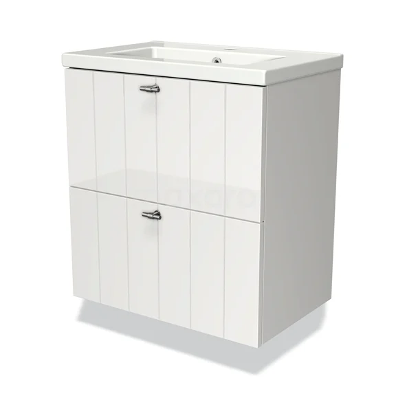 Stylish design Thanks to its stylish design, this vanity unit will be the eye-catcher of your bathroom. The base cabinet features a slatted front and has a high-gloss white finish. This colour has a modern appeal and gives the interior a fresh look-and-feel. In addition, the slatted front adds a rural touch. You need to add the handles yourself. These are available in different colours and shapes.