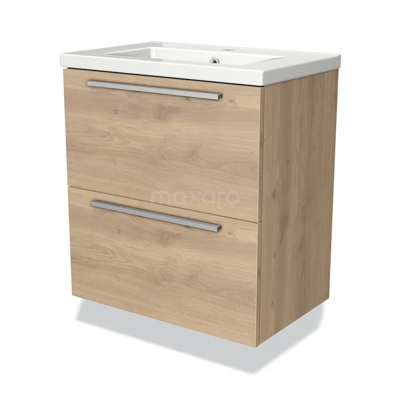 Modulo Slim Bathroom furniture with sink | 60 cm Light brown oak Flat front Ceramic 2 Stacked drawers
