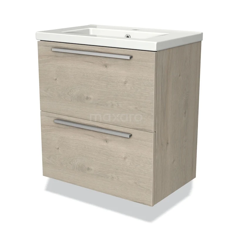 Modulo Slim Bathroom furniture with sink | 60 cm Light grey oak Flat front Ceramic 2 Stacked drawers