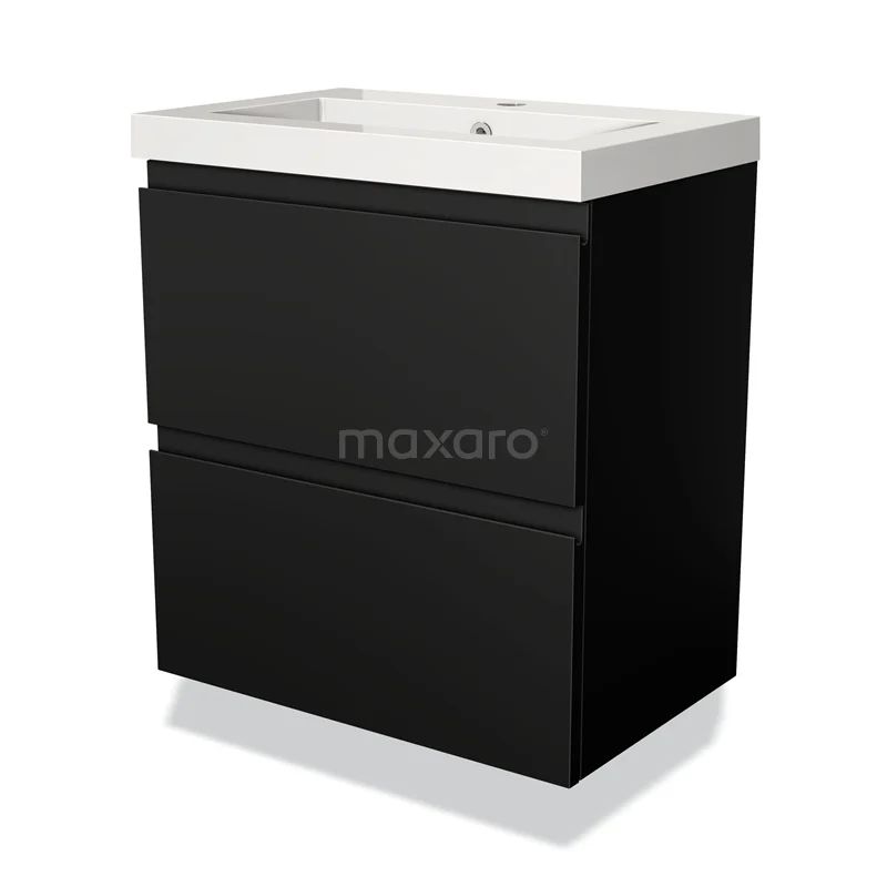 Modulo Slim Bathroom furniture with sink | 60 cm Matte black Handle-less front Mineral marble 2 Stacked drawers