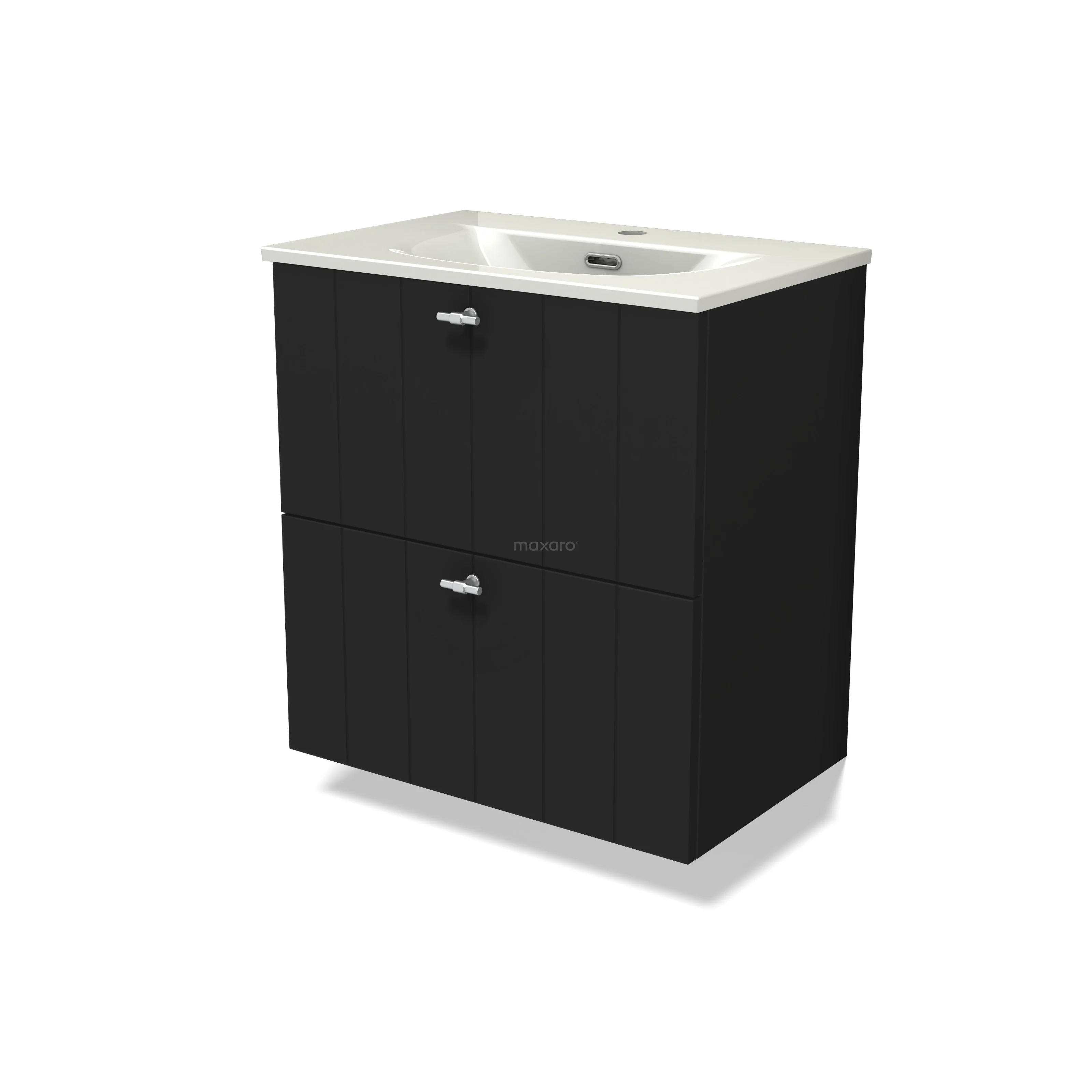 Modulo Slim Bathroom furniture with sink | 60 cm Matte black Slat front Ceramic 2 Stacked drawers