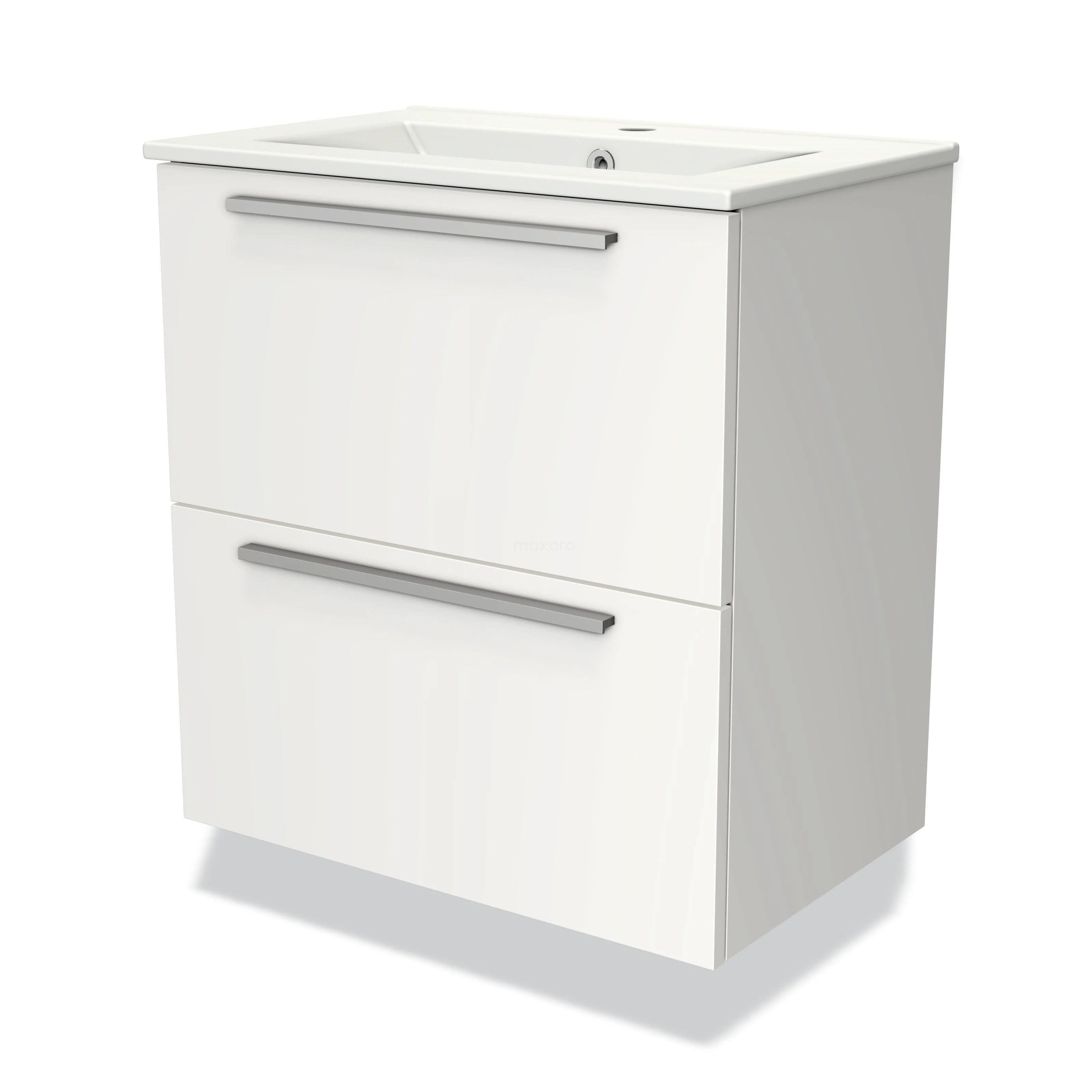 Modulo Slim Bathroom furniture with sink | 60 cm Matte white Flat front Ceramic 2 Stacked drawers