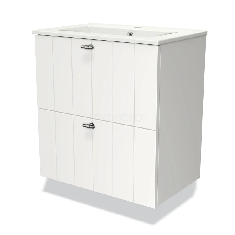 Stylish design The stylish design makes this bathroom unit the eye-catcher of your bathroom. The base cabinet features a slatted front and has a matte white finish. This colour has a modern appeal and gives the unit a fresh look and feel. In addition, the slatted front adds a rural touch. You need to add the handles yourself. These are available in different colours and shapes.