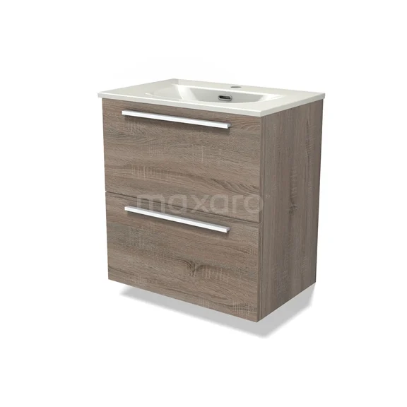 Modulo Slim Bathroom furniture with sink | 60 cm Oak Flat front Ceramic 2 Stacked drawers
