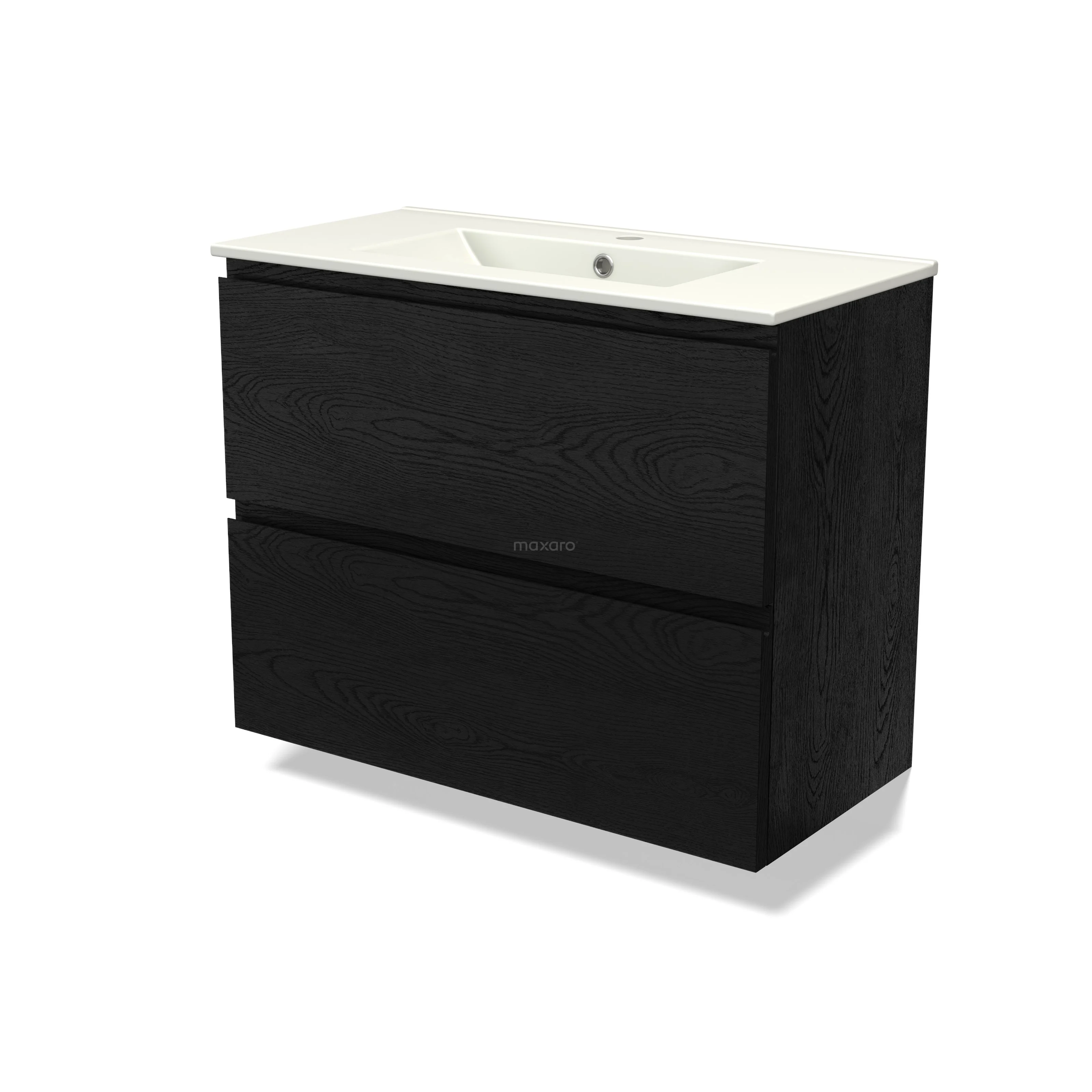 Modulo Slim Bathroom furniture with sink | 80 cm Black oak Handle-less front Ceramic 2 Stacked drawers