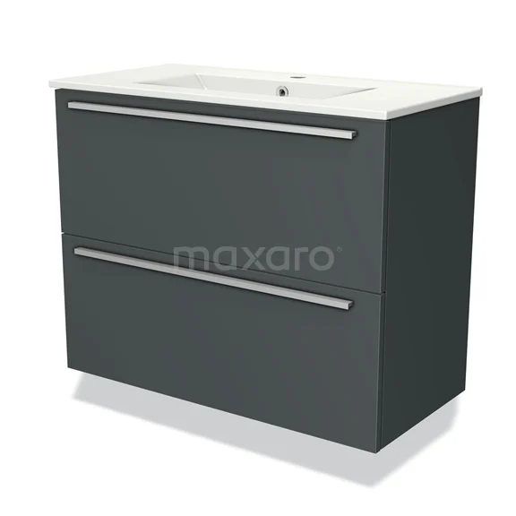 Modulo Slim Bathroom furniture with sink | 80 cm Dark grey Flat front Ceramic 2 Stacked drawers
