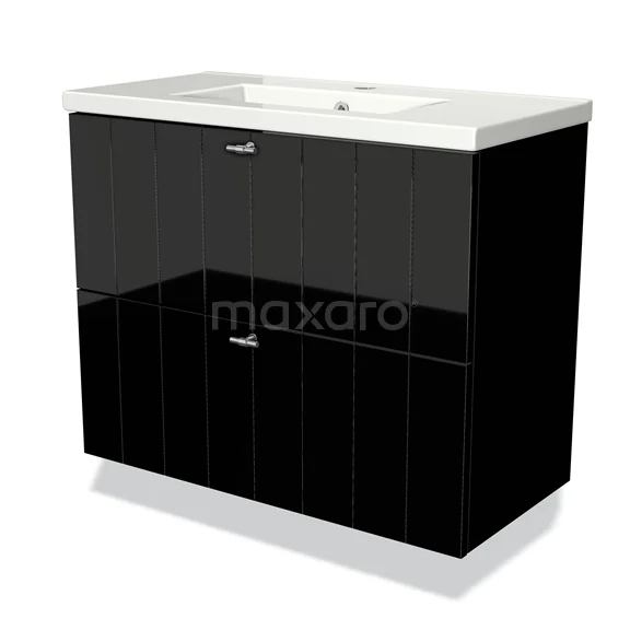 Modulo Slim Bathroom furniture with sink | 80 cm High-gloss black Slat front Ceramic 2 Stacked drawers