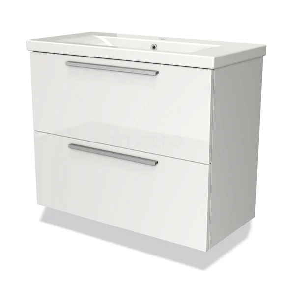 Modulo Slim Bathroom furniture with sink | 80 cm High-gloss white Flat front Ceramic 2 Stacked drawers