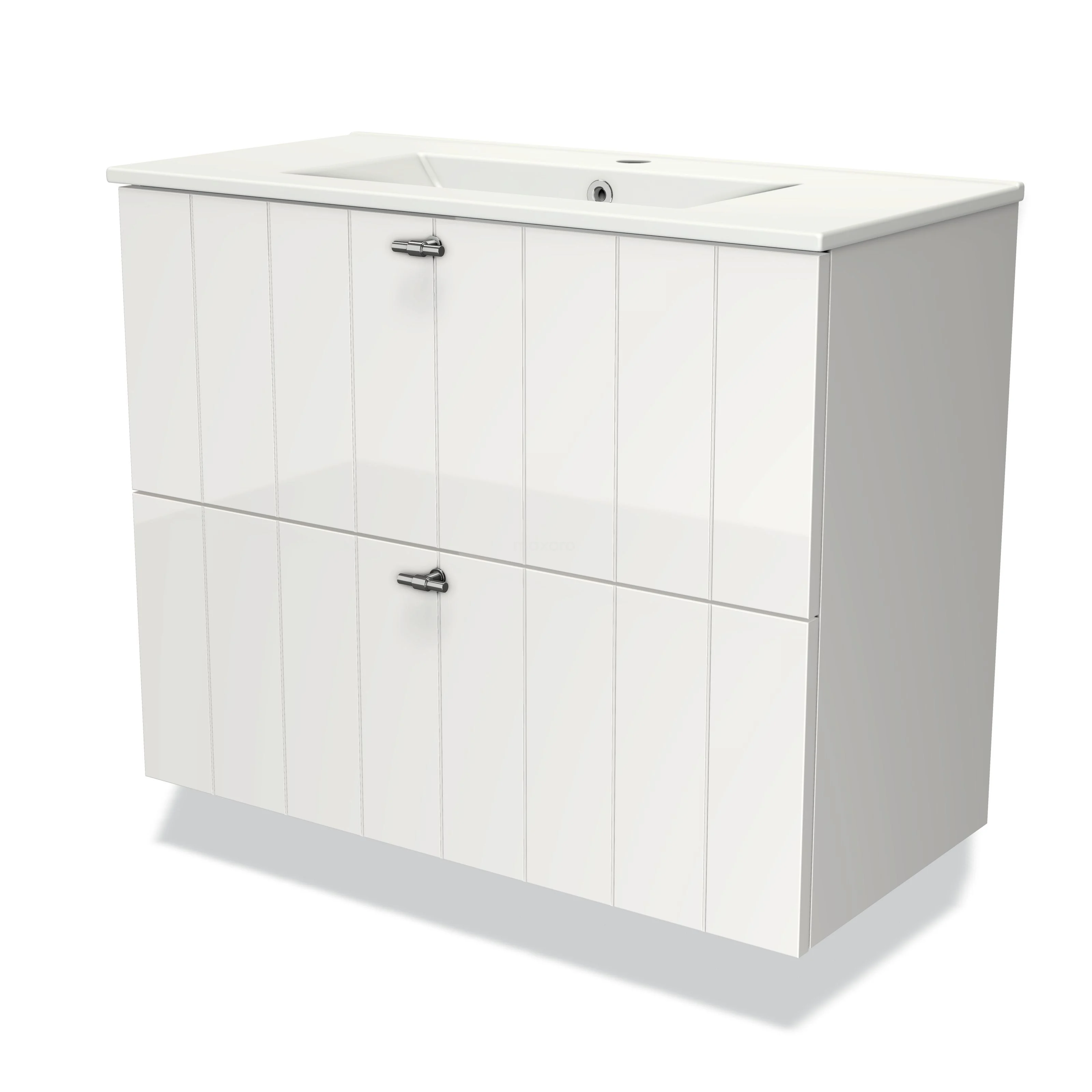 Modulo Slim Bathroom furniture with sink | 80 cm High-gloss white Slat front Ceramic 2 Stacked drawers