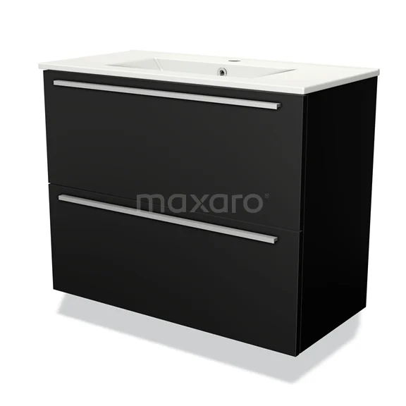 Modulo Slim Bathroom furniture with sink | 80 cm Matte black Flat front Ceramic 2 Stacked drawers