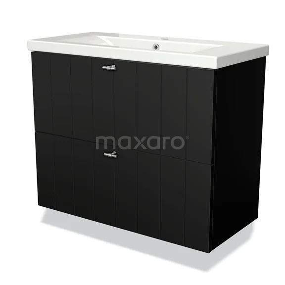 Modulo Slim Bathroom furniture with sink | 80 cm Matte black Slat front Ceramic 2 Stacked drawers