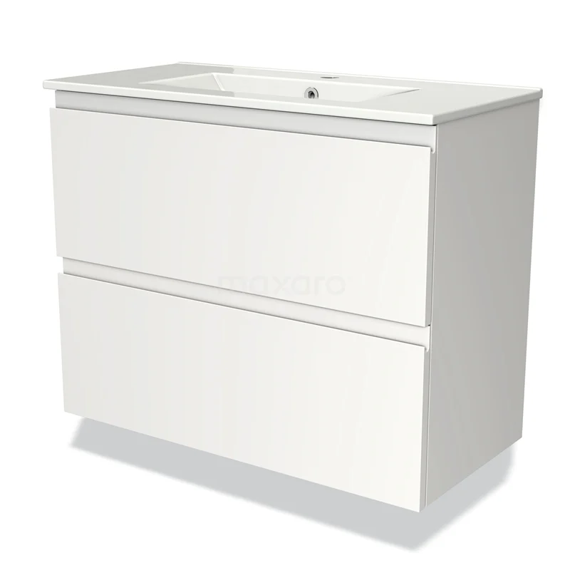 Modulo Slim Bathroom furniture with sink | 80 cm Matte white Handle-less front Ceramic 2 Stacked drawers