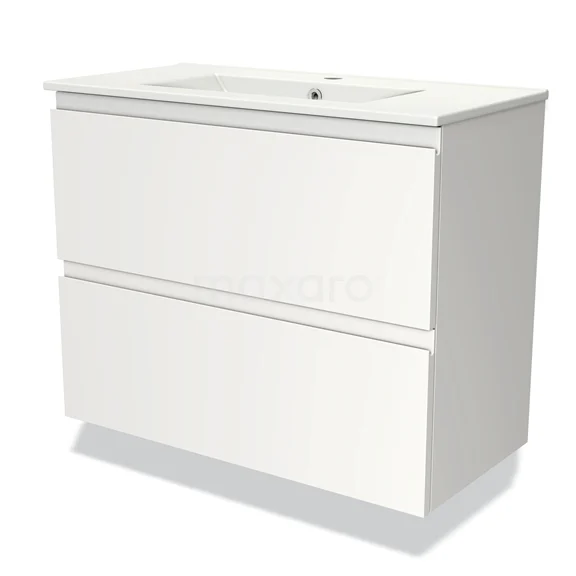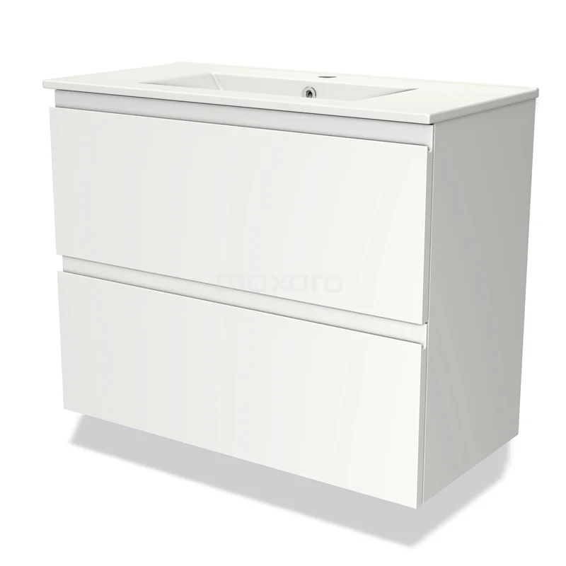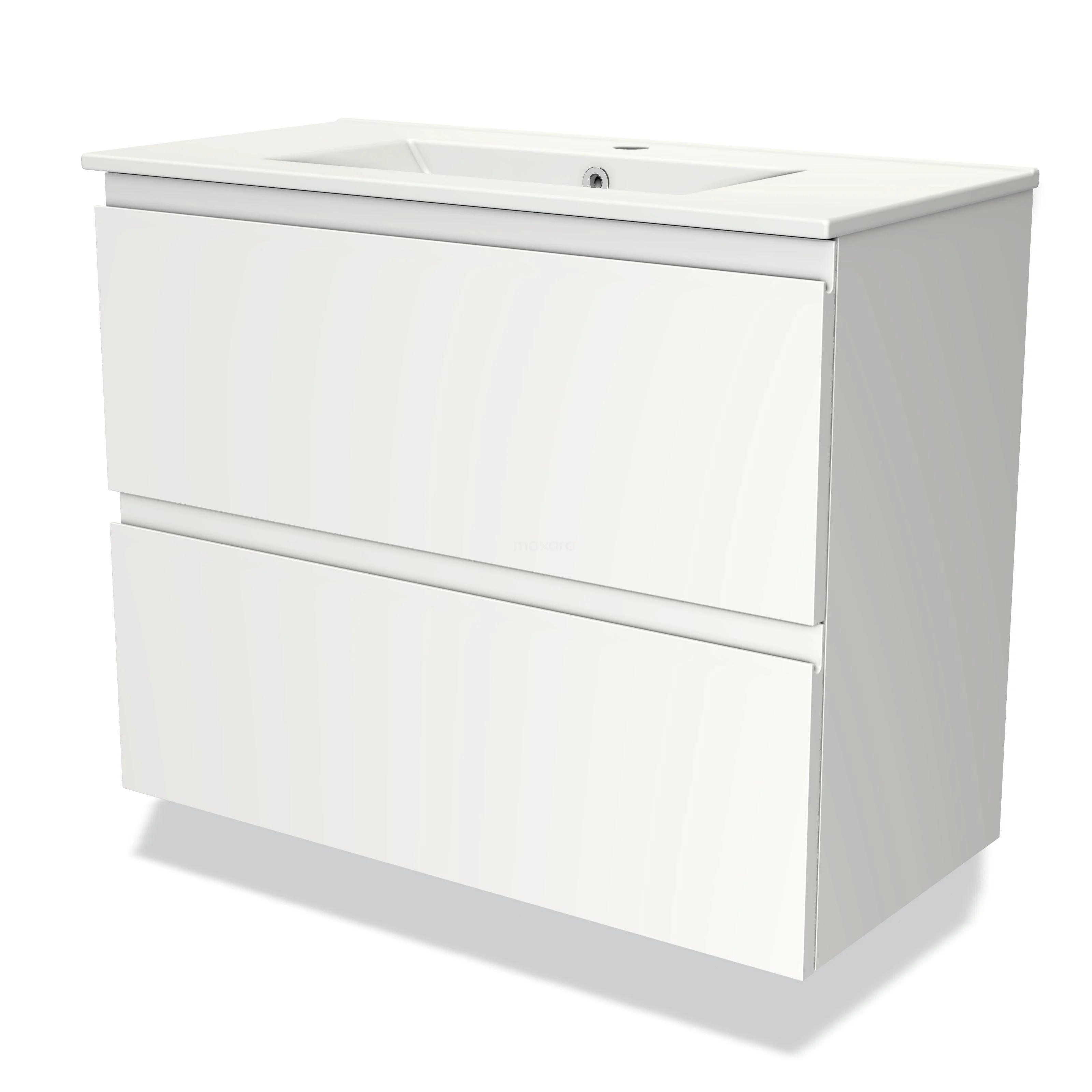 Modulo Slim Bathroom furniture with sink | 80 cm Matte white Handle-less front Ceramic 2 Stacked drawers
