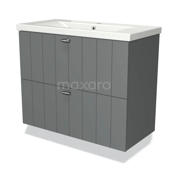 Modulo Slim Bathroom furniture with sink | 80 cm Mid grey Slat front Ceramic 2 Stacked drawers