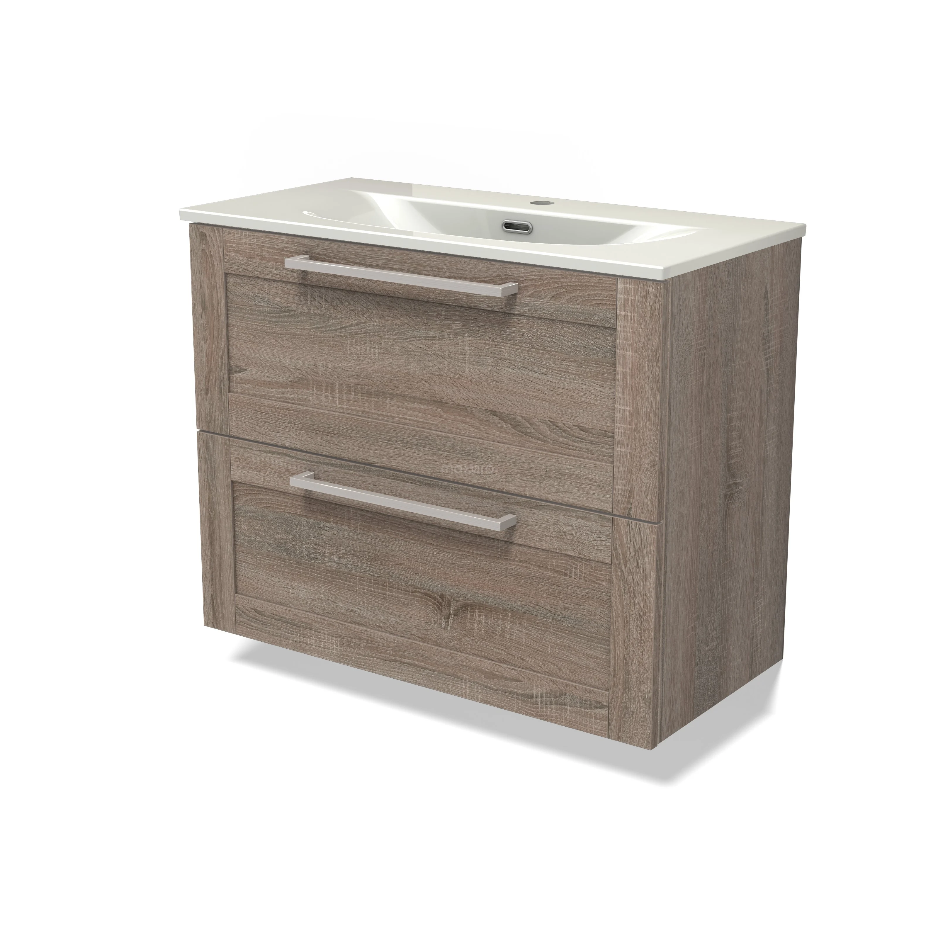 Modulo Slim Bathroom furniture with sink | 80 cm Oak Frame front Ceramic 2 Stacked drawers