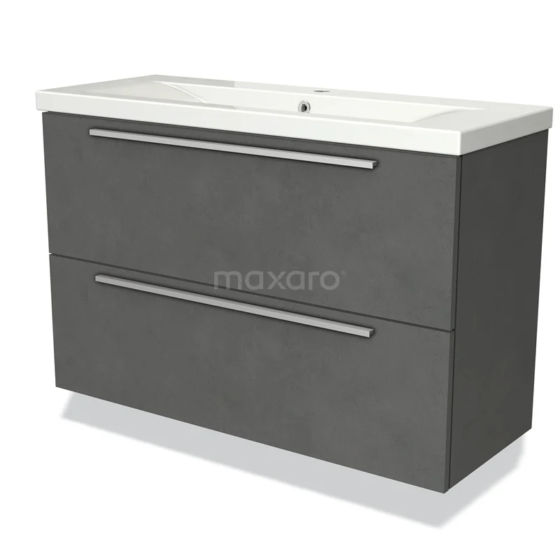 Modulo Slim Vanity units with basin | 100 cm Dark grey concrete Flat front Ceramic 2 Stacked drawers