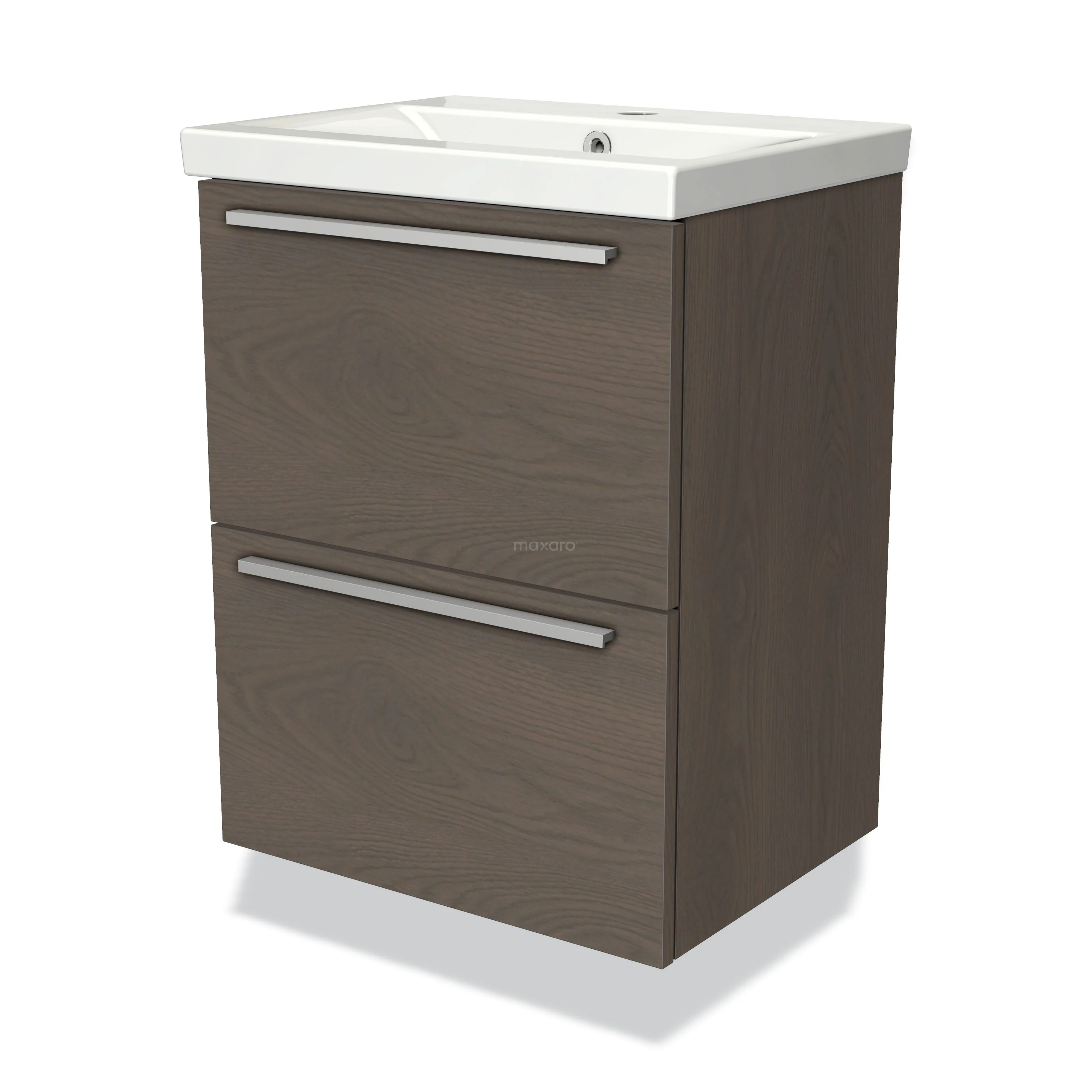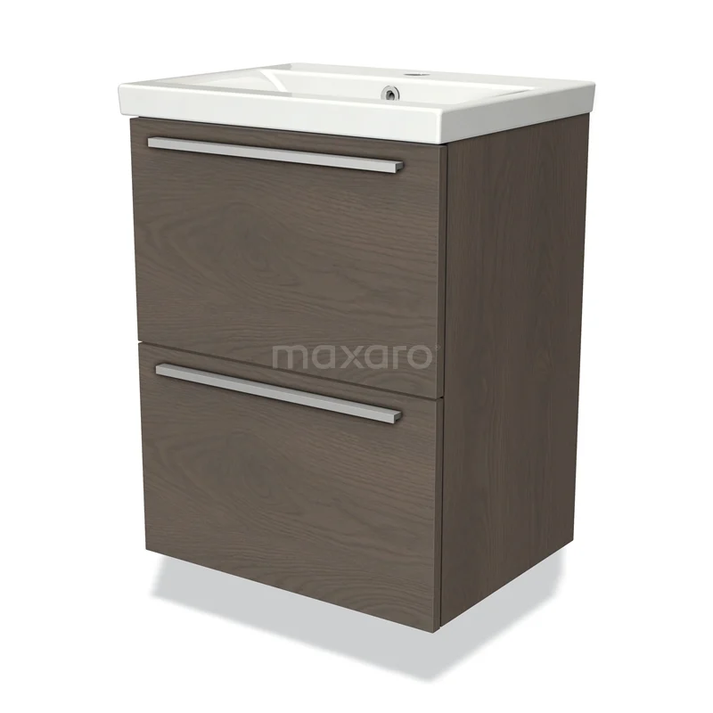 Modulo Slim Vanity units with basin | 50 cm Dark brown oak Flat front Ceramic 2 Stacked drawers