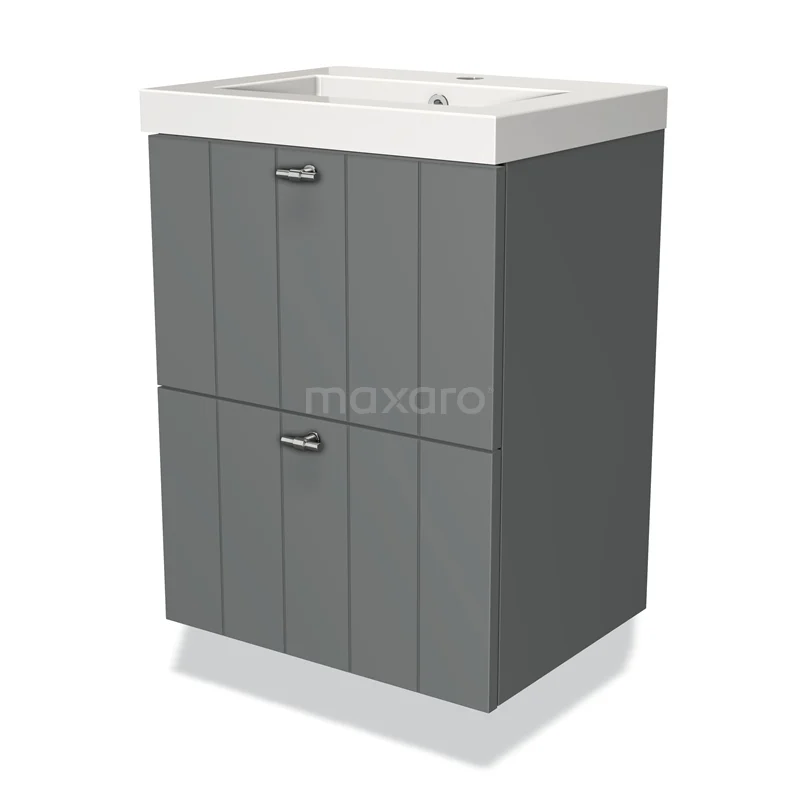 Modulo Slim Vanity units with basin | 50 cm Mid grey Slat front Mineral marble 2 Stacked drawers