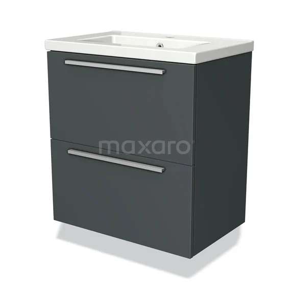 Modulo Slim Vanity units with basin | 60 cm Dark grey Flat front Ceramic 2 Stacked drawers