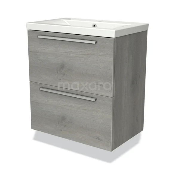 Modulo Slim Vanity units with basin | 60 cm Grey oak Flat front Ceramic 2 Stacked drawers
