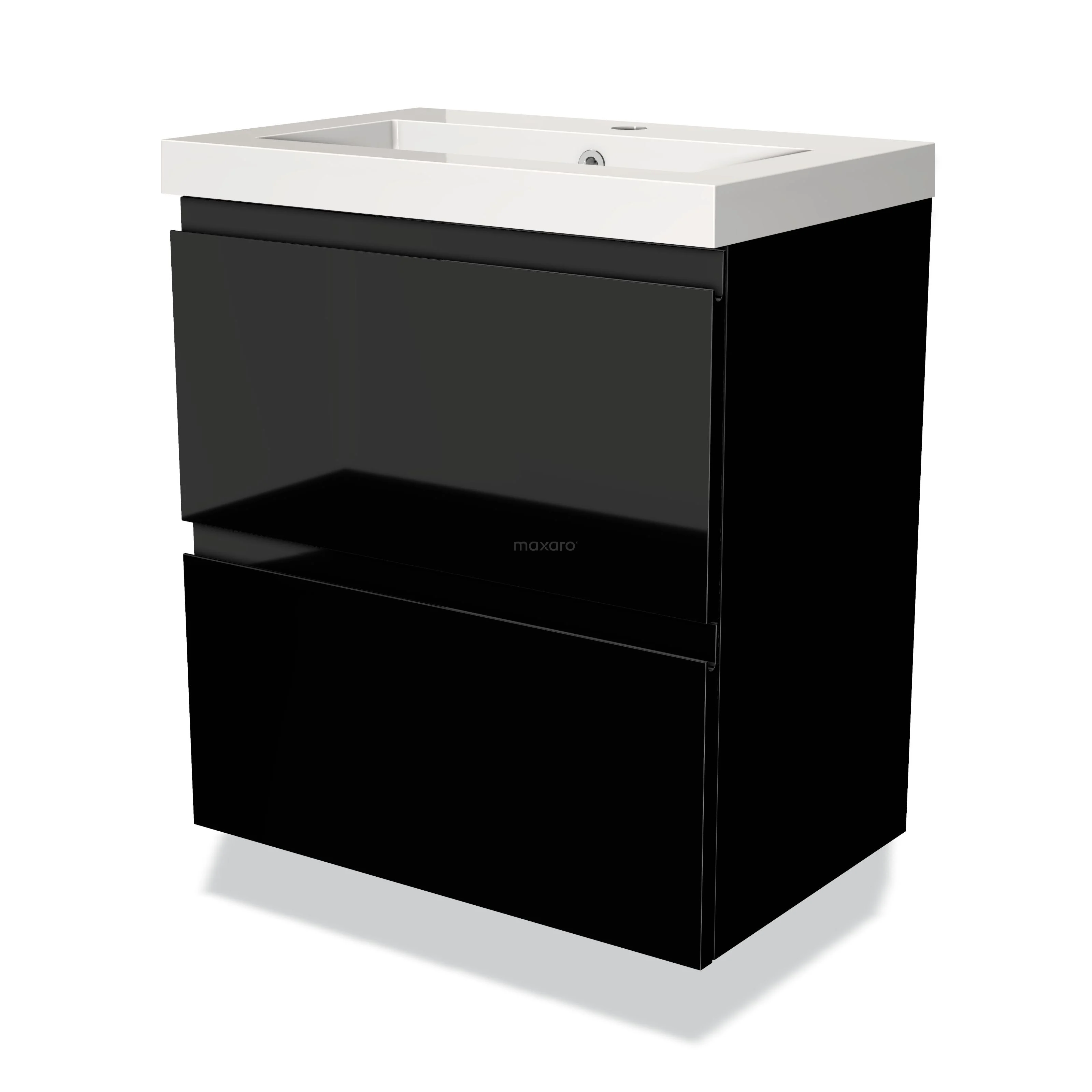 Modulo Slim Vanity units with basin | 60 cm High-gloss black Handle-less front Mineral marble 2 Stacked drawers