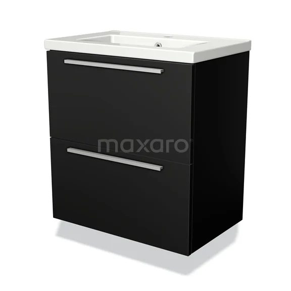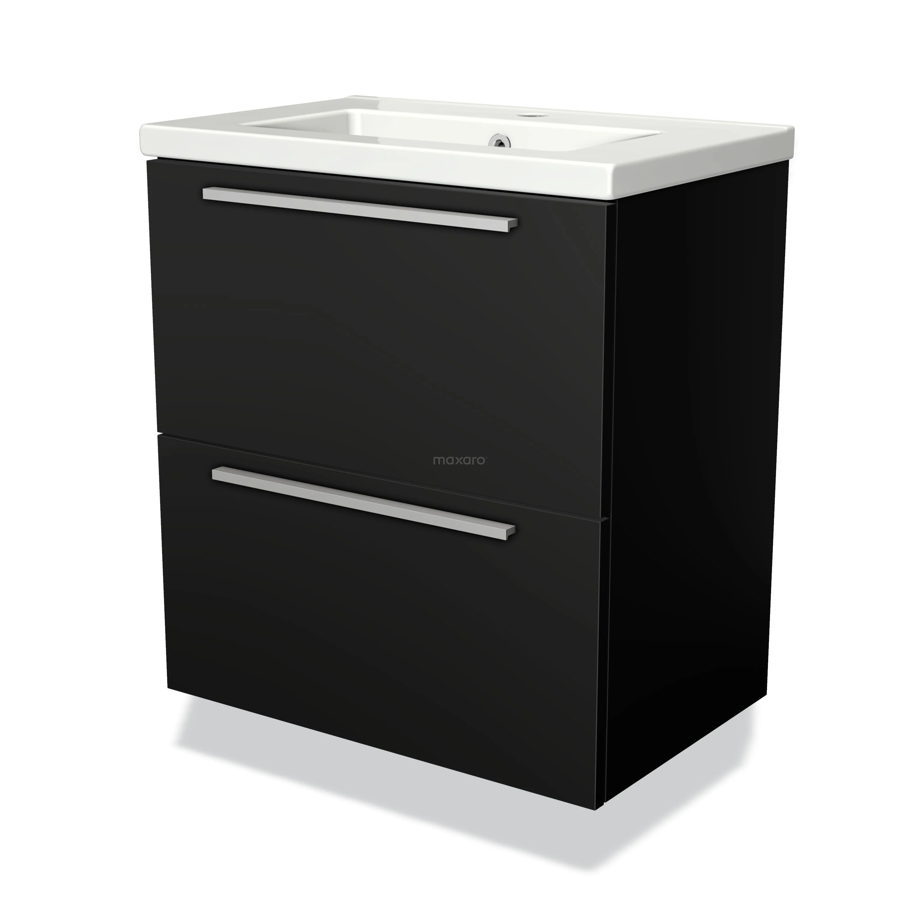 Modulo Slim Vanity units with basin | 60 cm Matte black Flat front Ceramic 2 Stacked drawers