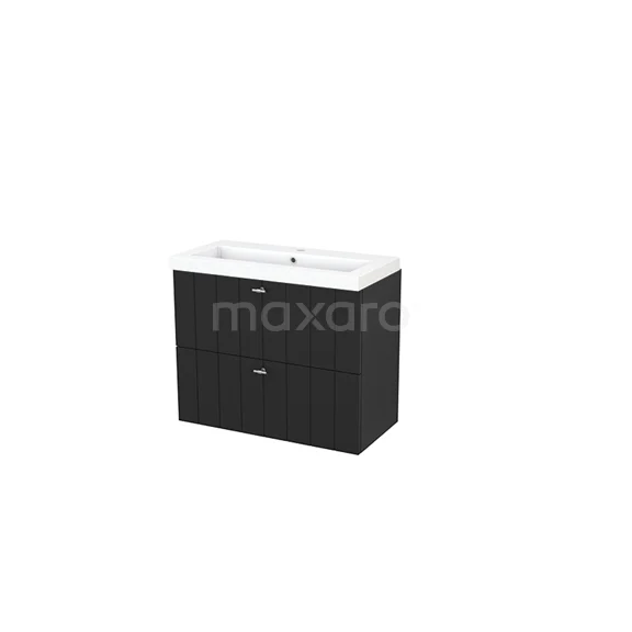 Modulo+ Slim Bathroom furniture with sink | 80 cm Carbon Slat front Mineral marble 2 Stacked drawers