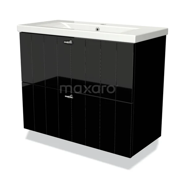 Modulo Slim Vanity units with basin | 80 cm High-gloss black Slat front Ceramic 2 Stacked drawers