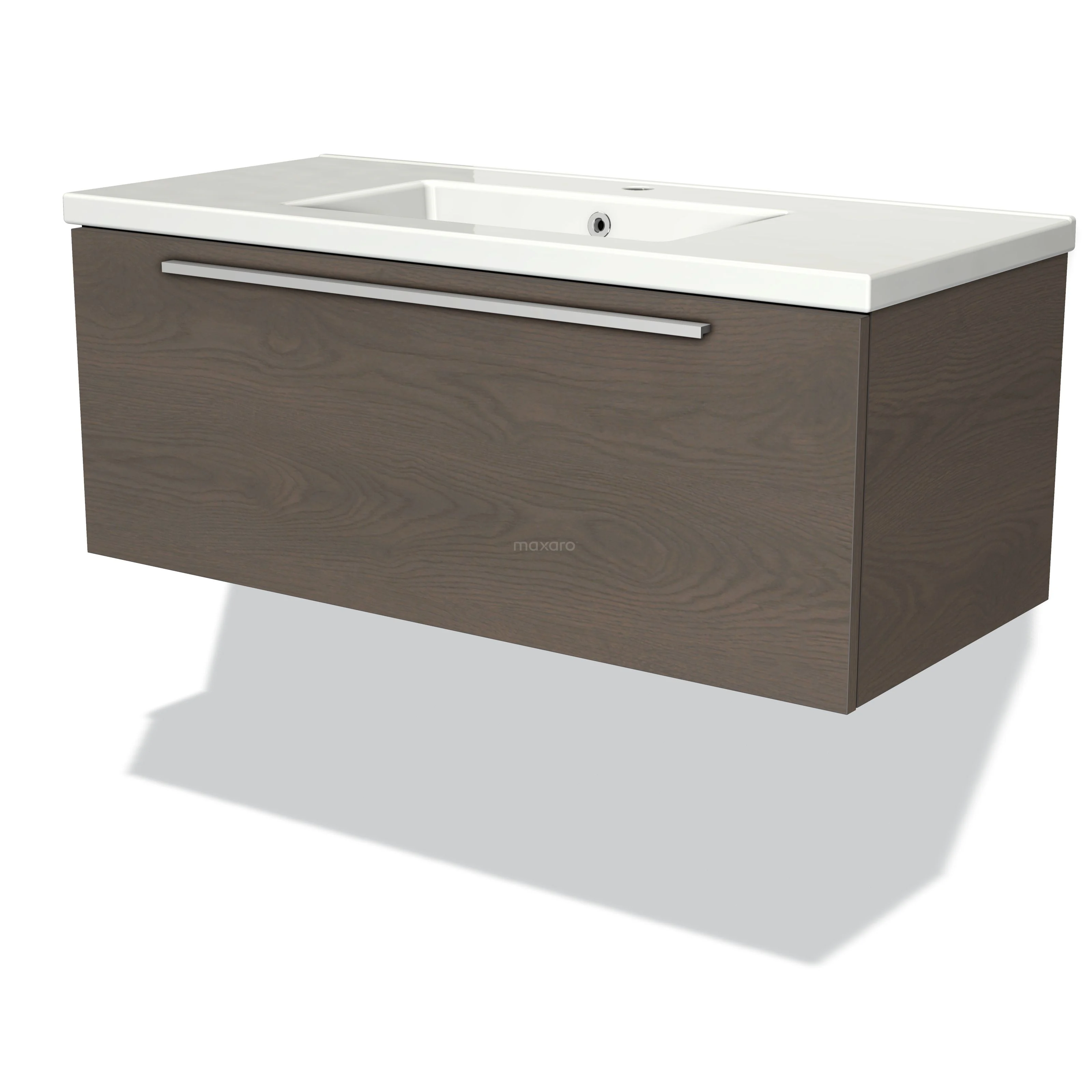 Modulo Vanity units with basin | 100 cm Dark brown oak Flat front Ceramic 1 drawer