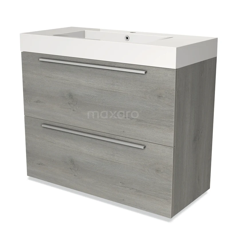 Modulo Vanity units with basin | 100 cm Grey oak Flat front Mineral marble 2 stacked drawers under each other