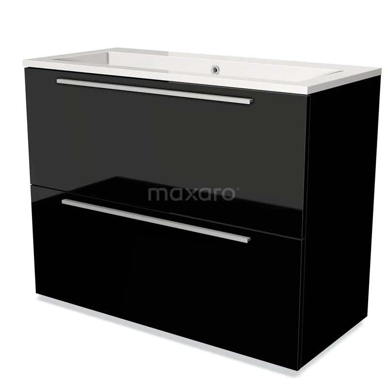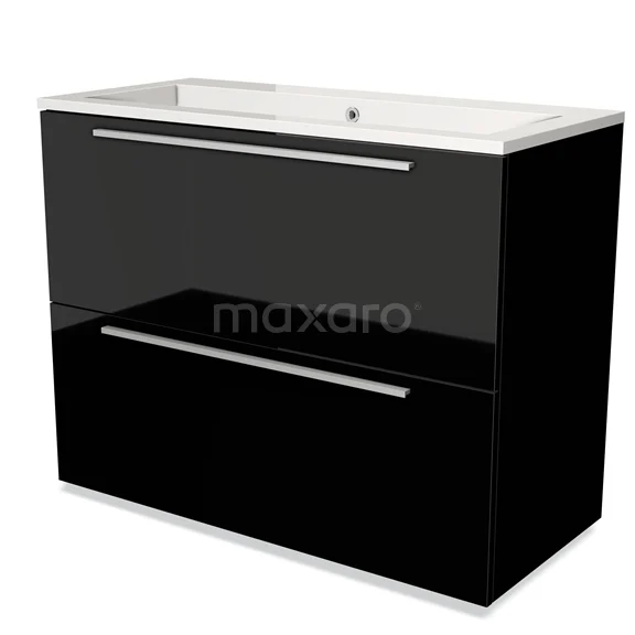 Modulo Vanity units with basin | 100 cm High-gloss black Flat front Mineral marble 2 stacked drawers under each other