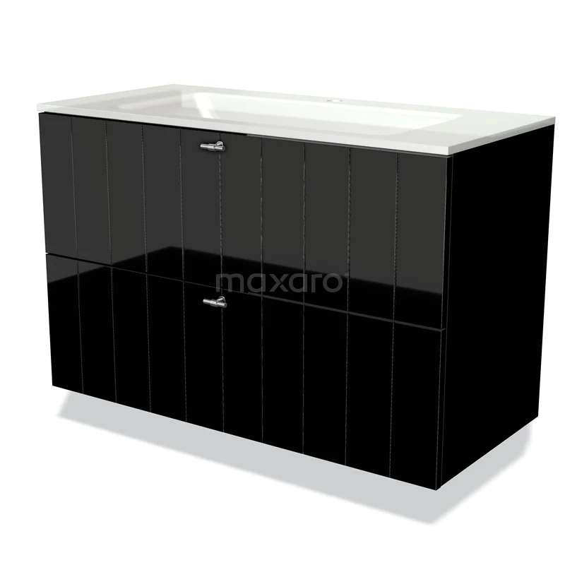 Stylish design The stylish design makes this bathroom unit the eye-catcher of your bathroom. The base cabinet features a slatted front and has a high-gloss black finish. This colour creates a cool look-and-feel and is ideal for adding a striking accent to the interior. In addition, the slatted front adds a rural touch. You will need to joint the handles yourself. These are available in different colours and shapes.