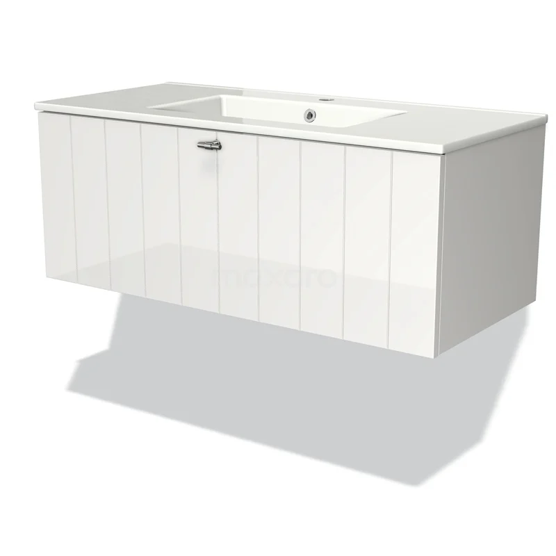 Modulo Vanity units with basin | 100 cm High-gloss white Slat front Ceramic 1 drawer