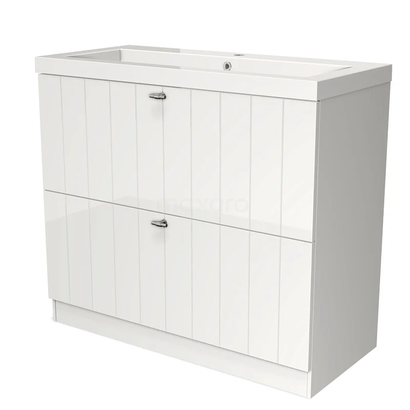 Modulo Vanity units with basin | 100 cm High-gloss white Slat front Mineral marble 2 high drawers standing drawers under each other