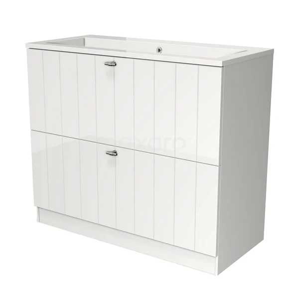 Modulo Vanity units with basin | 100 cm High-gloss white Slat front Mineral marble 2 high drawers standing drawers under each other