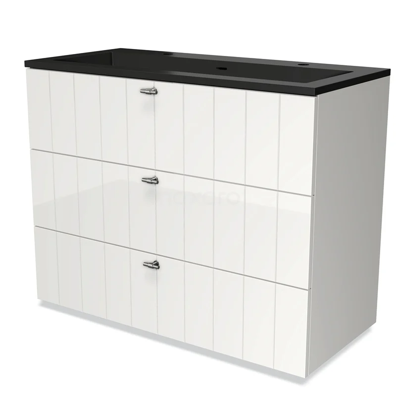 Modulo Vanity units with basin | 100 cm High-gloss white Slat front Quartz 3 drawers