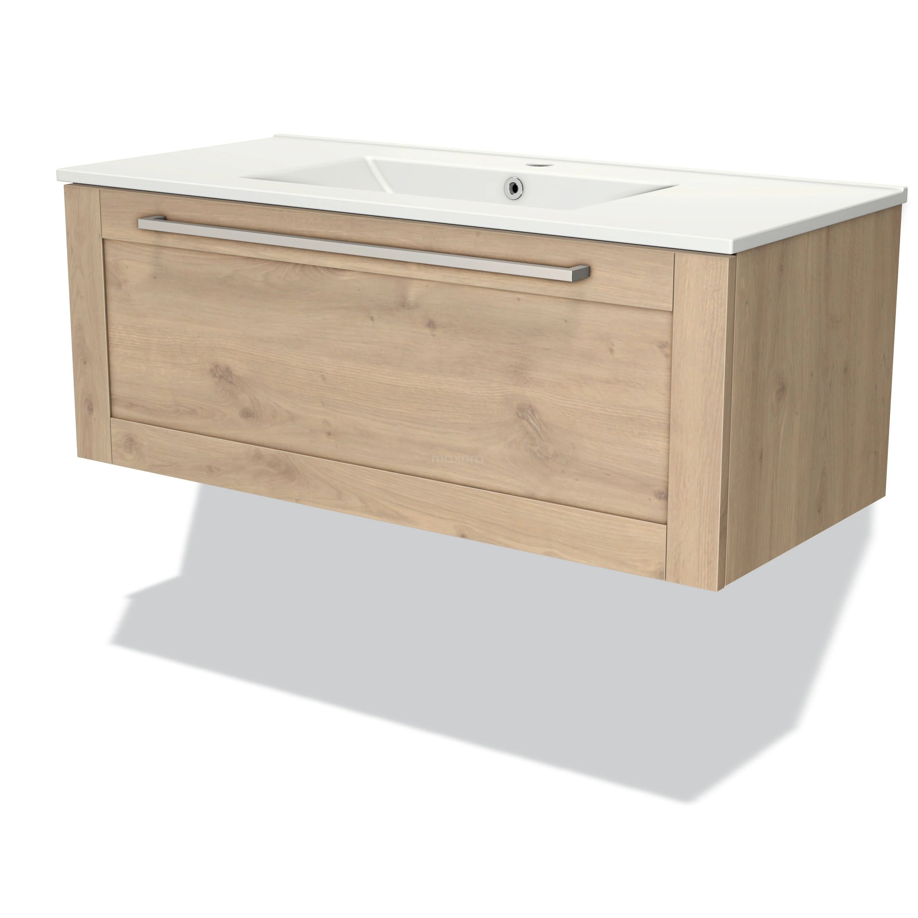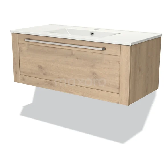 Modulo Vanity units with basin | 100 cm Light brown oak Frame front Ceramic 1 drawer